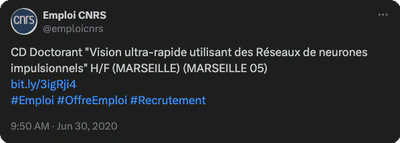 THE POSITION HAS BEEN FILLED. CD Doctorant “Vision ultra-rapide par réseaux de neurones impulsionnels” H/F (MARSEILLE)