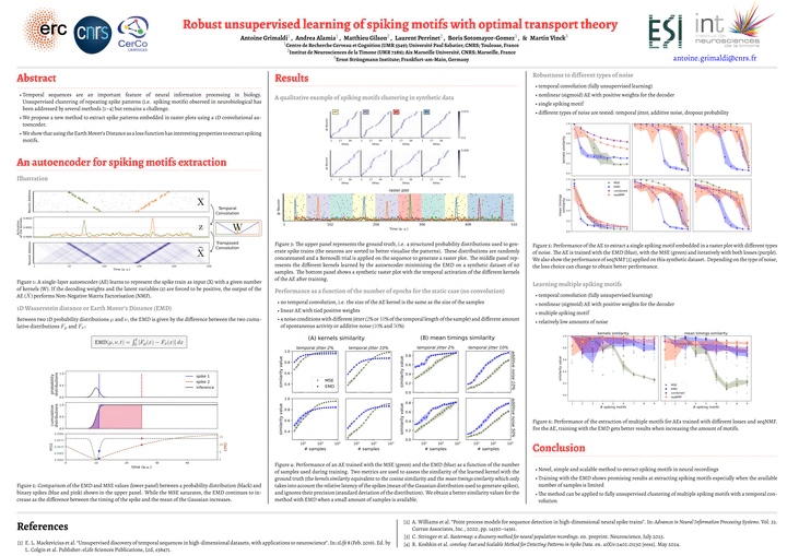 Temporal sequences are an important feature of neural information processing in biology. Neurons can fire a spike with millisecond precision, and, at the network level, repetitions of spatiotemporal spike patterns are observed in neurobiological data. However, methods for detecting precise temporal patterns in neural activity suffer from high computational complexity and poor robustness to noise, and quantitative detection of these repetitive patterns remains an open problem. Here, we propose a new method to extract spike patterns embedded in raster plots using a 1D convolutional autoencoder with the Earth Mover’s Distance (EMD) as a loss function. Importantly, the properties of the EMD make the method suitable for spike-based distributions, easy to compute, and robust to noise. Through gradient descent, the autoencoder is trained to minimize the EMD between the input and its reconstruction. We then expect the weight matrices to learn the repeating spike patterns present in the data. We validate our method on synthetically generated raster plots and compare its performance with an autoencoder trained using the Mean Squared Error (MSE) as a loss function. We show that the method using the EMD performs better at detecting the occurrence of the spike patterns, while the method using the MSE is better at capturing the underlying distributions used to generate the spikes. Finally, we propose to train the autoencoder iteratively by sequentially combining the EMD and the MSE losses. This sequential approach outperforms the widely used seqNMF method in terms of robustness to various types of noise, speed and stability. Overall, our method provides a novel approach to reliably extract repetitive temporal spike sequences, and can be readily generalized to other sequence detection applications.