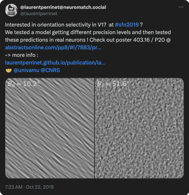 A key property of the neurons in the primary visual cortex (V1) is their selectivity to oriented stimuli in the visual field. Orientation selectivity allows the segmentation of objects in natural visual scenes, which is the first step in building integrative representations from retinal inputs. As such, V1 has always been of central interest in creating artificial neural networks and the recent years have seen a growing interest in the creation of explainable yet robust and adaptive models of cortical visual processes, for fundamental or applied purposes. One notable challenge for those models is to behave reliably in generic natural environments, where information is usually hidden in noise, while most models are typically studied with oriented gratings. Here we show that a simple biologically inspired neural network accounts for orientation selectivity to natural-like textures in the cat’s primary visual cortex. Our spiking neural network (SNN) is made of point neurons organized in recurrent and hierarchical layers based on the structure of cortical layers IV and II/III. We found that Spike-timing plasticity and synaptic recurrence allowed the SNN to self-organize its connections weights and reproduce the activity of neurons recorded with laminar probes in cortical areas 17 and 18 of cats, notably orientation tuning responses. After less than 5 seconds of stimulus presentation, the SNN displays narrow orientation selectivity (bandwidth = 10 degrees) characteristic of sparse representations, removes noise from the input and learns the structure of natural pattern repetitions. Our results support the use of natural stimuli to study theoretical and experimental cortical dynamics. Furthermore, this model encourages using SNNs to reduce complexity in cortical networks as a method to understand the separate contribution of different components in the laminar organization of the cortex. From an applied perspective, the computations this network performs could also be used as an alternative to classical blackbox Deep Learning models used in artificial vision.
