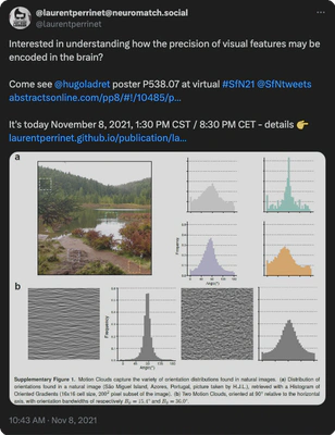 The primary visual cortex (V1) processes complex mixtures of orientations to build neural representations of our everyday visual environment. It remains unclear how V1 adapts to the highly volatile distributions of orientations found in natural images. We used naturalistic stimuli and measured the response of V1 neurons to orientation distributions of varying bandwidth. Although broad distributions decreased single neuron tuning, a neurally plausible decoder could robustly retrieve the orientations of stimuli from the population activity at all bandwidths. This decoder demonstrates that V1 population co-encodes orientation and its precision, enhancing population decoding performances compared to sole orientation decoding. This internal representation is mediated by temporally distinct neural dynamics and supports a precision-weighted description of neuronal message passing in the visual cortex, in line with predictive processing theories.