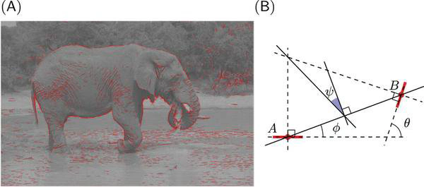 Pour arriver à ce résultat, les chercheurs ont utilisé des modèles mathématiques de la représentation des images dans le cortex visuel primaire et en particulier les inter-relations entre des éléments de contours voisins. En étudiant les résultats de l’analyse, on note que dans les images naturelles, des contours parallèles sont observés majoritairement, signe que les contours et textures présents dans les images contiennent en majorité des alignements. C’est encore plus vrai dans les environnements artificiels comme dans une scène d’intérieur (par exemple un bureau) où les bords francs dominent. On montre aussi que les objets co-circulaires (c’est-à-dire des configurations symétriques) sont aussi relativement plus présents que des configurations aléatoires.