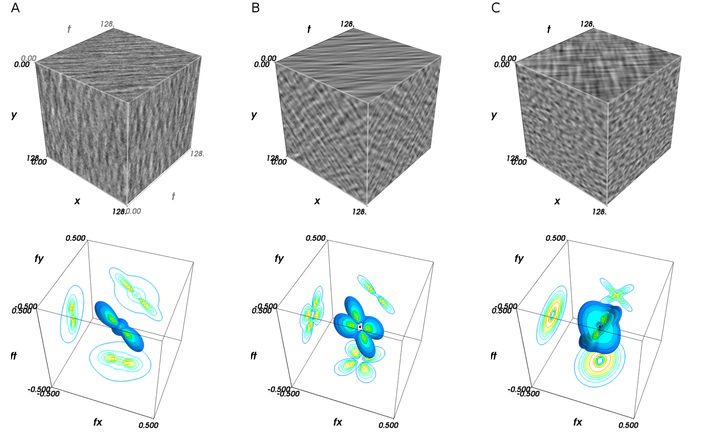 Choosing an appropriate set of stimuli is essential to characterize the response of a sensory system to a particular functional dimension, such as the eye movement following the motion of a visual scene. Here, we describe a framework to generate random texture movies with controlled information content, i.e., Motion Clouds. These stimuli are defined using a generative model that is based on controlled experimental parametrization. We show that Motion Clouds correspond to dense mixing of localized moving gratings with random positions. Their global envelope is similar to natural-like stimulation with an approximate full-field translation corresponding to a retinal slip. We describe the construction of these stimuli mathematically and propose an open-source Python-based implementation. Examples of the use of this framework are shown. We also propose extensions to other modalities such as color vision, touch, and audition.