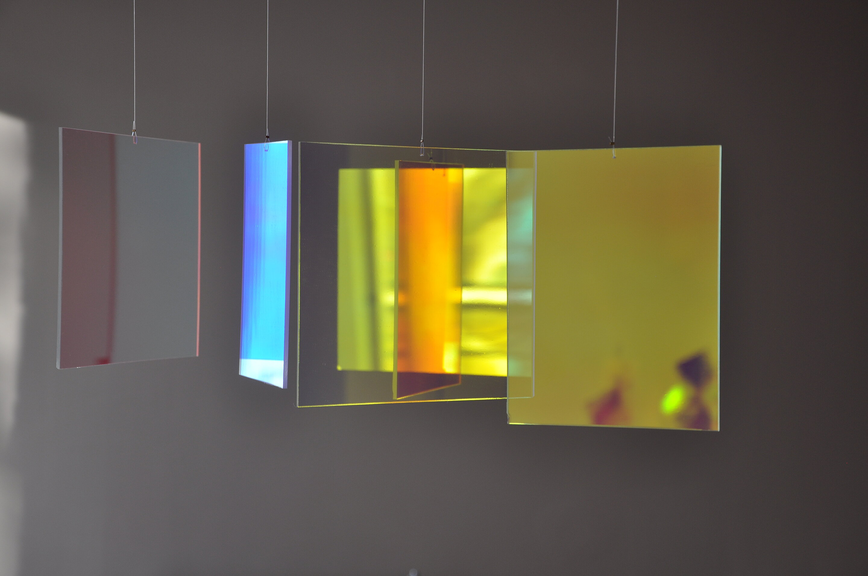 L’exposition s’inscrit dans le prolongement de cette pensée, illustrant la vibration des apparences au travers du concept d’Interférence. Ce phénomène physique, où deux ondes de même nature en superposition se renforcent ou s’annulent, inspire Etienne Rey à établir un parallèle visuel. Il reprend, décale, transpose des motifs desquels émergent des « interférences optiques », des « ondes chromatiques ».